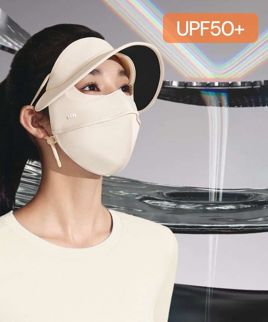 UPF50+ yarn-dyed fabric blocks over 99% of UV rays, while a black-coated visor ensures zero light penetration for enhanced anti-aging protection. Windproof fabric resists up to 167mm/s airflow to prevent moisture loss and dryness.