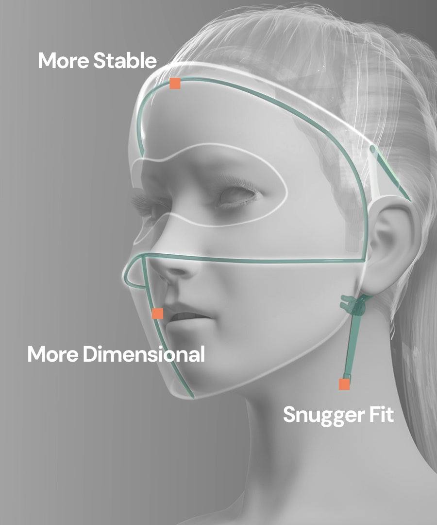 A three-point ear-to-forehead system with soft-bone support ensures the mask stays securely in place, even during movement. The patented adjustable ear loops offer a custom fit for different face shapes—no tugging, no slipping.