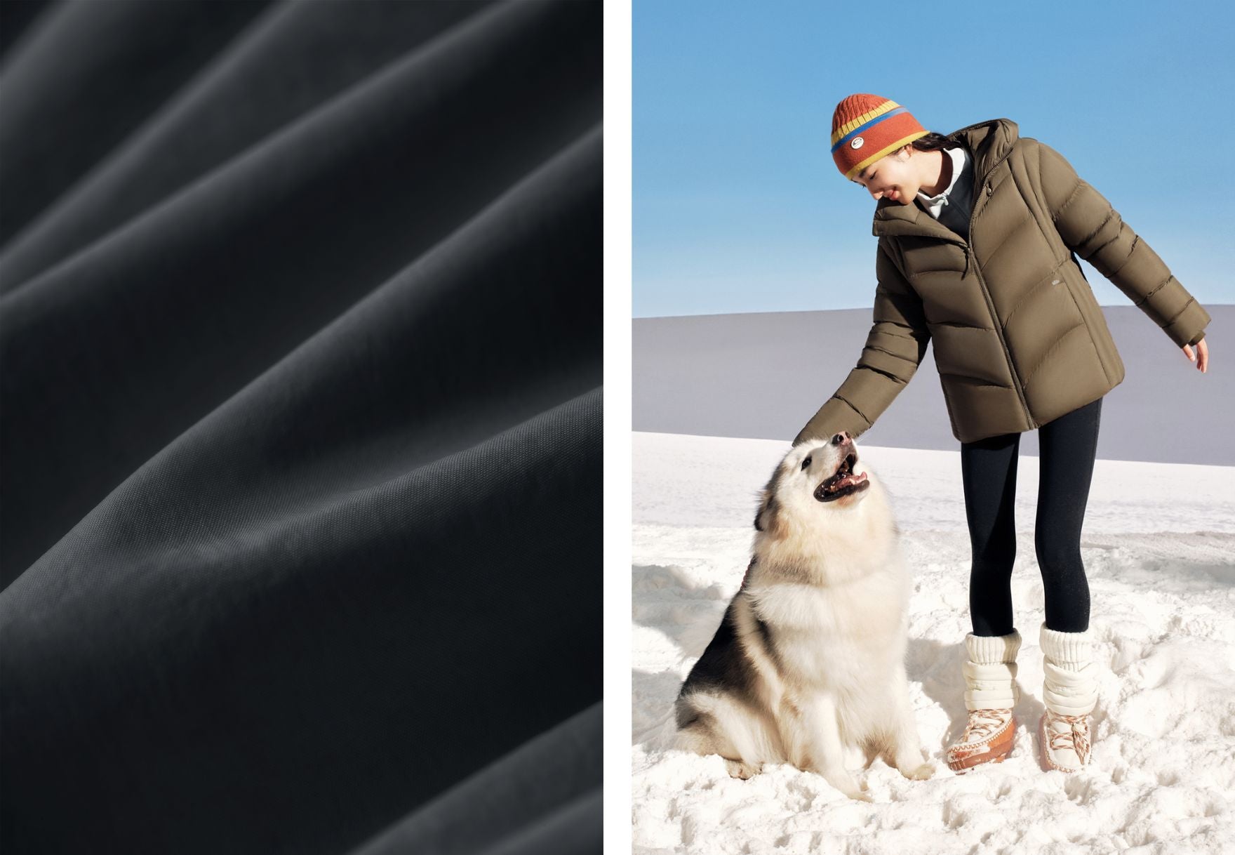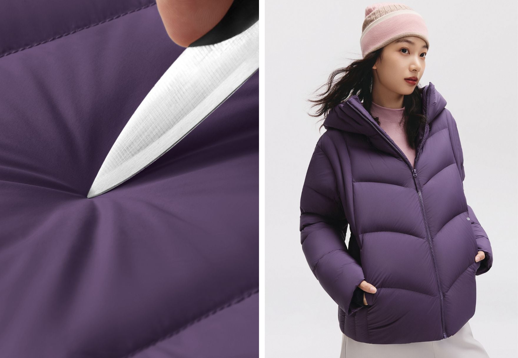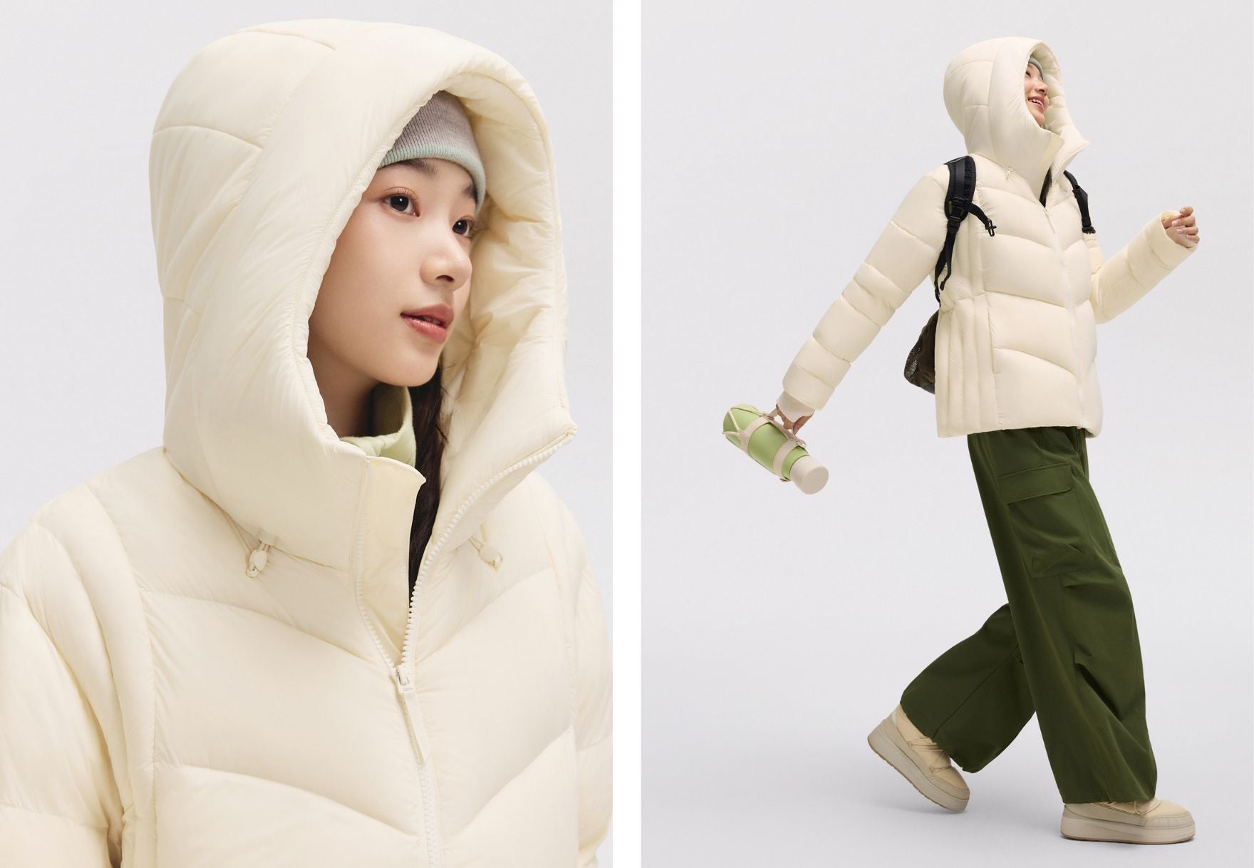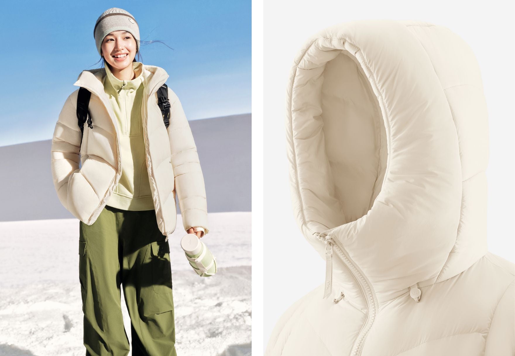 Designed with reinforced fill at shoulders, waist, and hem for maximum warmth, plus an 11cm high collar, adjustable hood, and double-layer cuffs to block wind and retain heat.