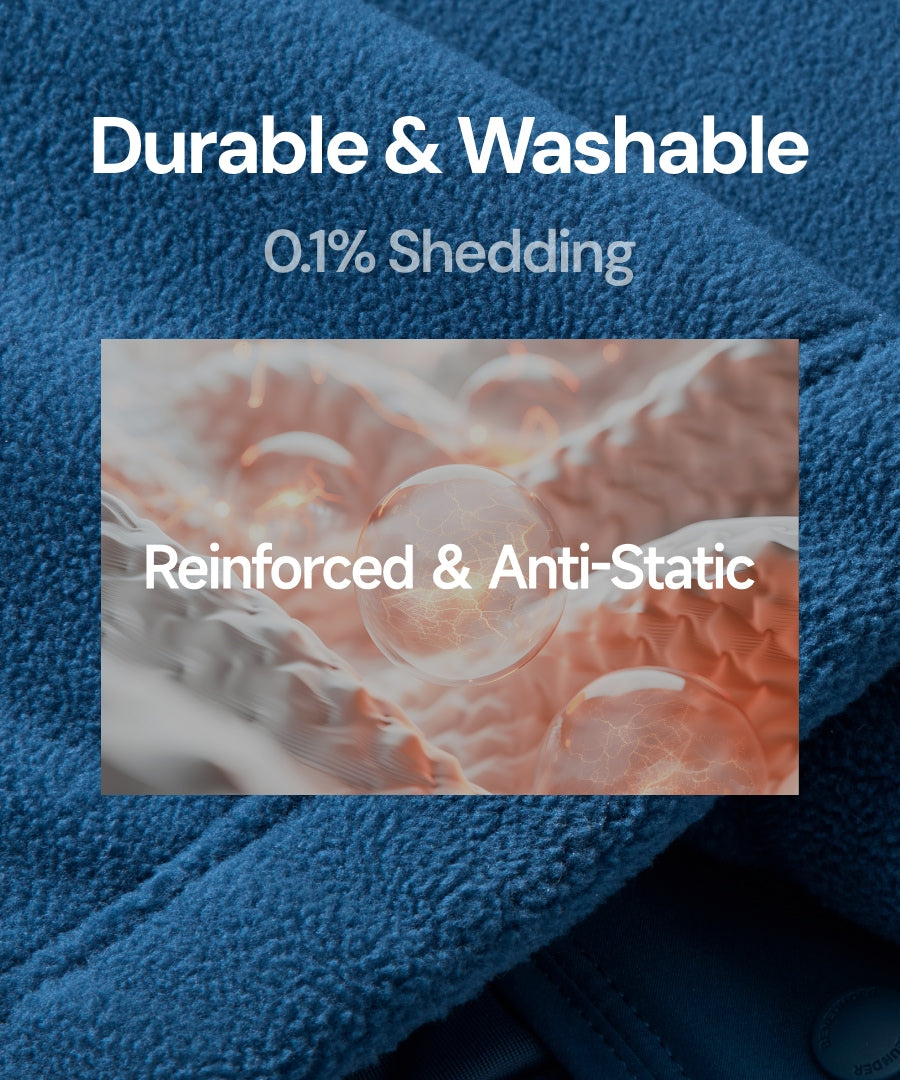 Reinforced edging and anti-static technology ensure long-lasting wear without dust cling. Machine-washable with a shedding rate as low as 0.1%, it retains shape and durability for extended outdoor adventures.