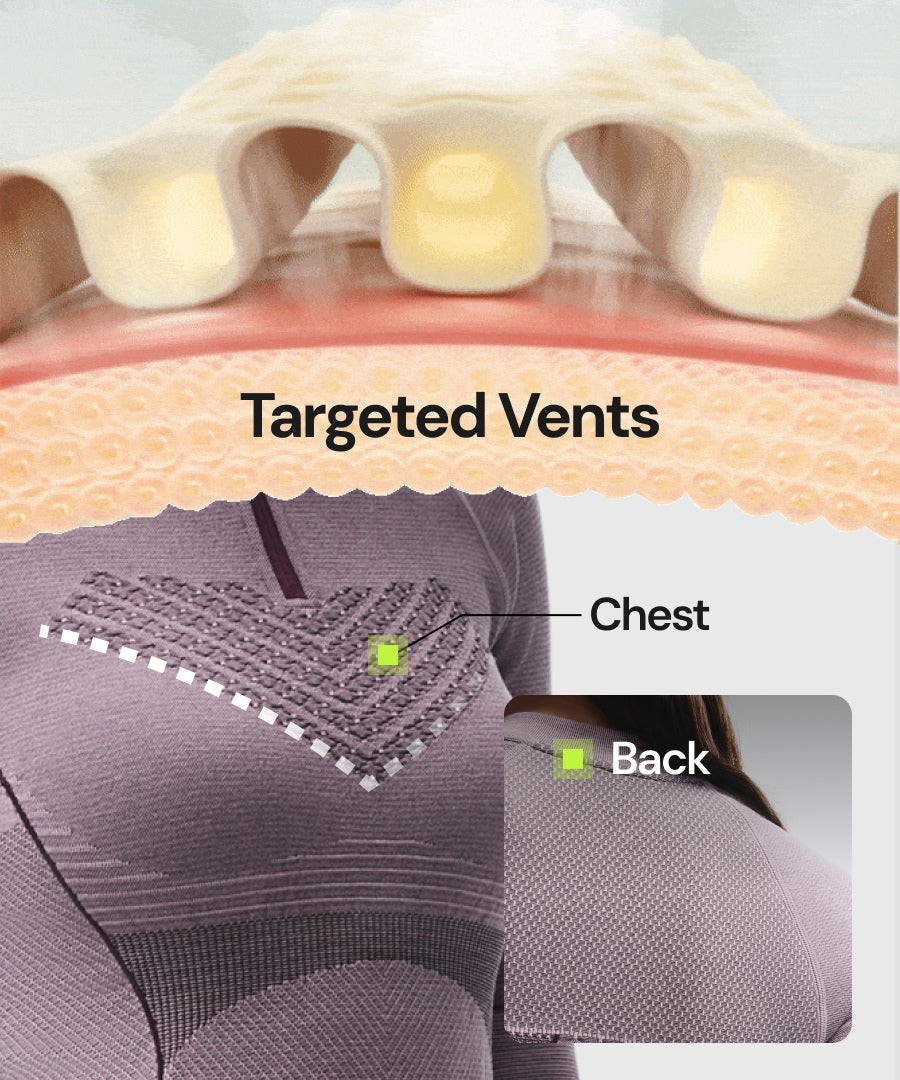 Targeted sweat vents at the chest, back, and underarms accelerate evaporation for a fresh, dry feel even during workouts.