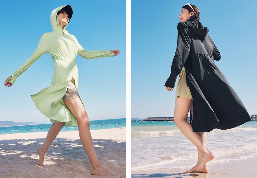 The Beneunder Women's Longline Full-Coverage Sun Jacket is engineered for advanced sun protection and effortless summer wear. The brim is enhanced with UPF2000+ silver-coated black lamination, offering 100% light-blocking performance for your face and neck. Meanwhile, the body is crafted from UPF200+ original yarn sun-protection fabric, which is ultra-light, breathable, and powerfully UV-resistant. With a relaxed A-line silhouette, extended shoulder cape, and hand-covering sleeves, this jacket offers full-body defense while remaining stylish and airy—ideal for walking, commuting, or enjoying the outdoors in strong sunlight.