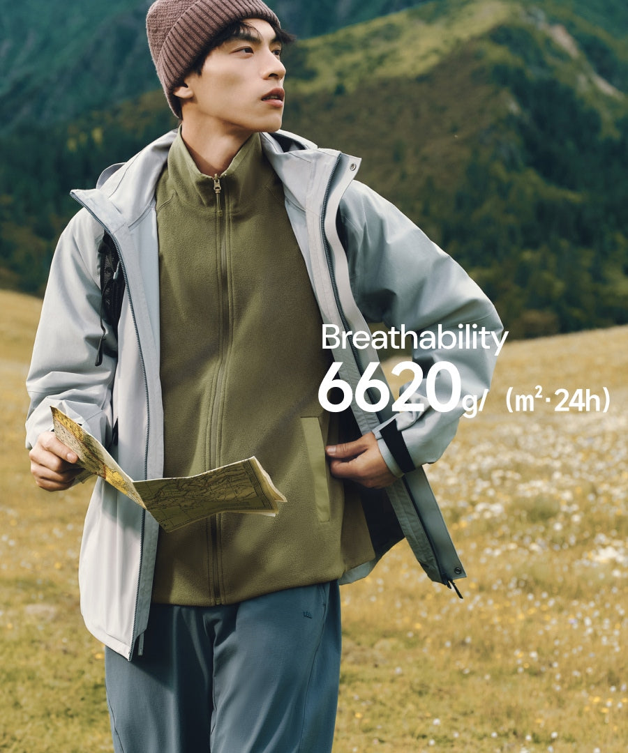 With a moisture release rate of 6620 g/(㎡·24h), this jacket wicks away sweat efficiently, keeping you fresh and dry even during high-exertion hikes or climbs.
