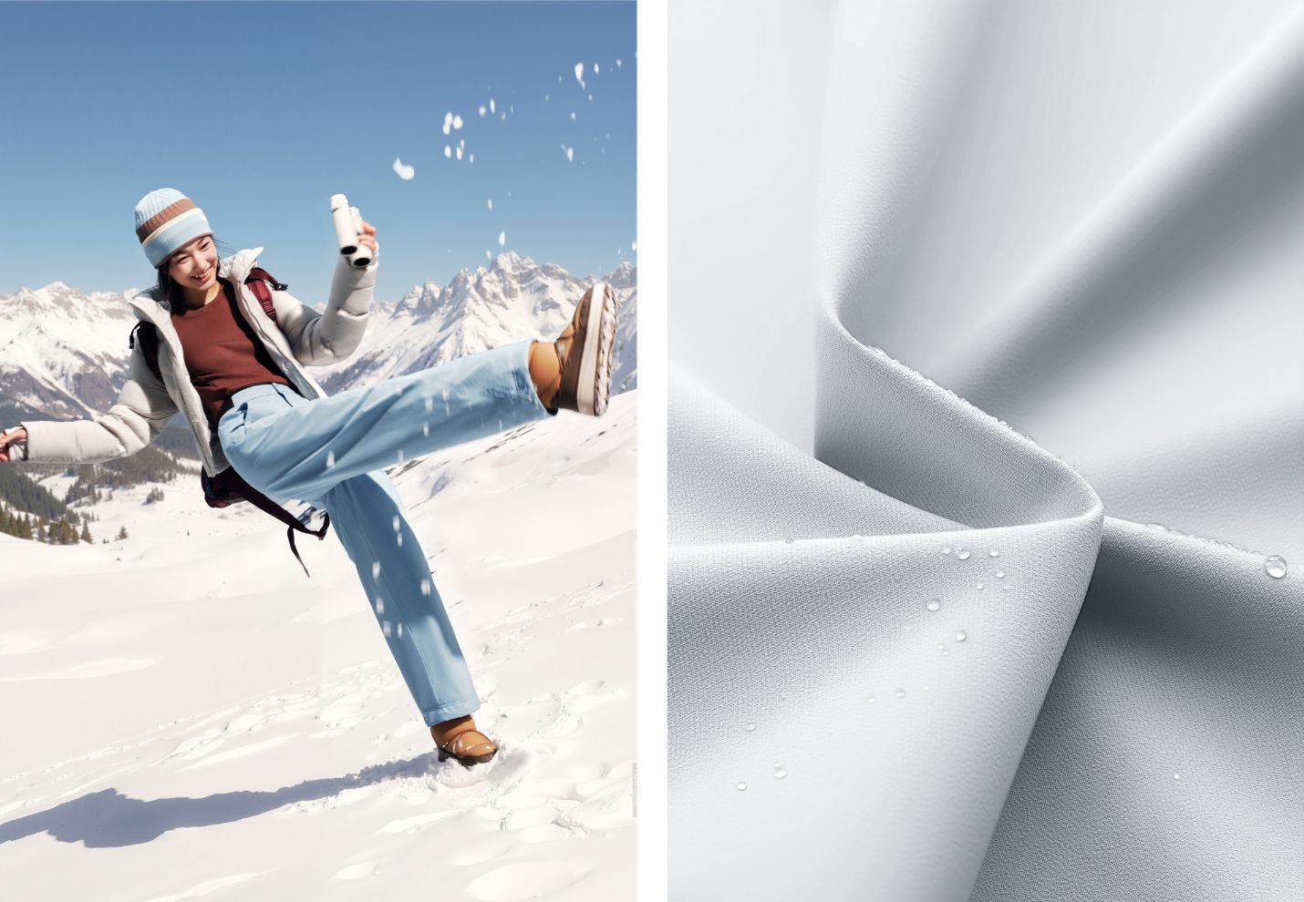 - Windproof index < 0.8 mm/s, moisture regain 0.3% for dry, cozy wear