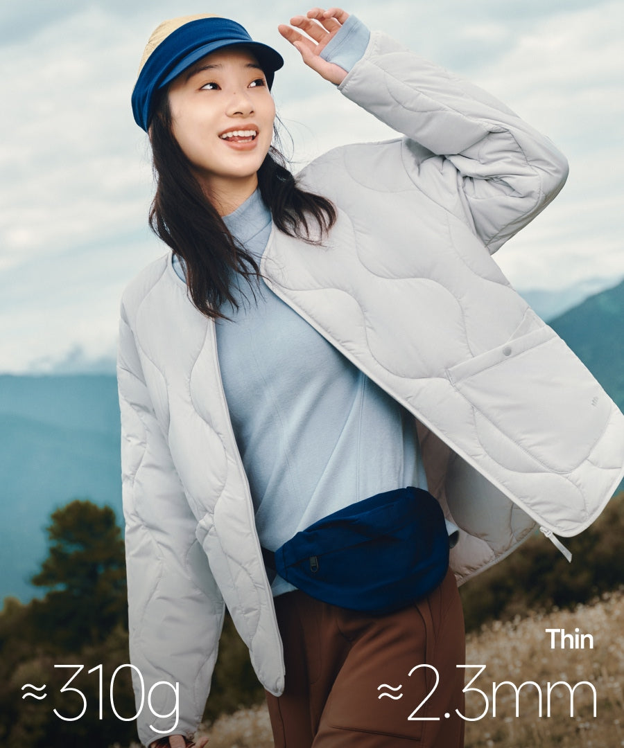 Weighing just ~310g and only 2.3cm thin, it provides warmth without bulk, ensuring unrestricted movement.