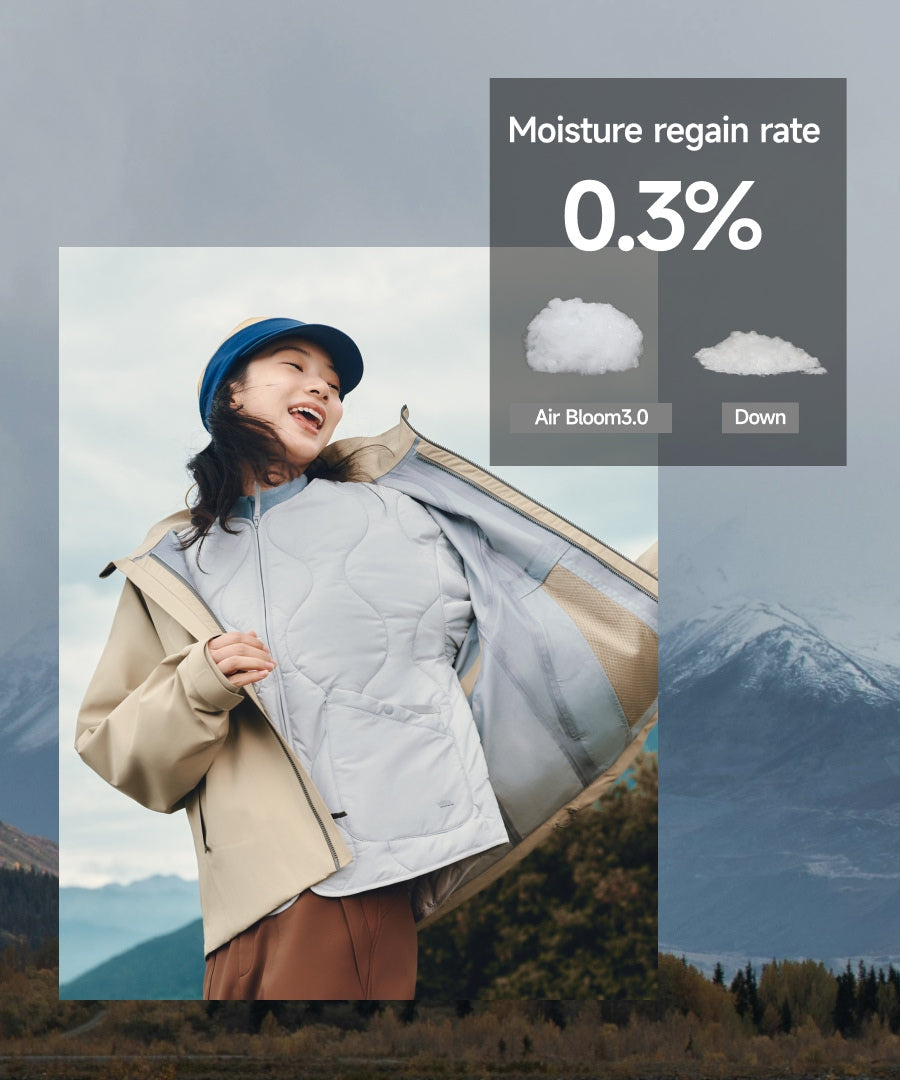 With a moisture regain rate as low as 0.3%, the insulation resists dampness, staying fluffy and warm without clumping.