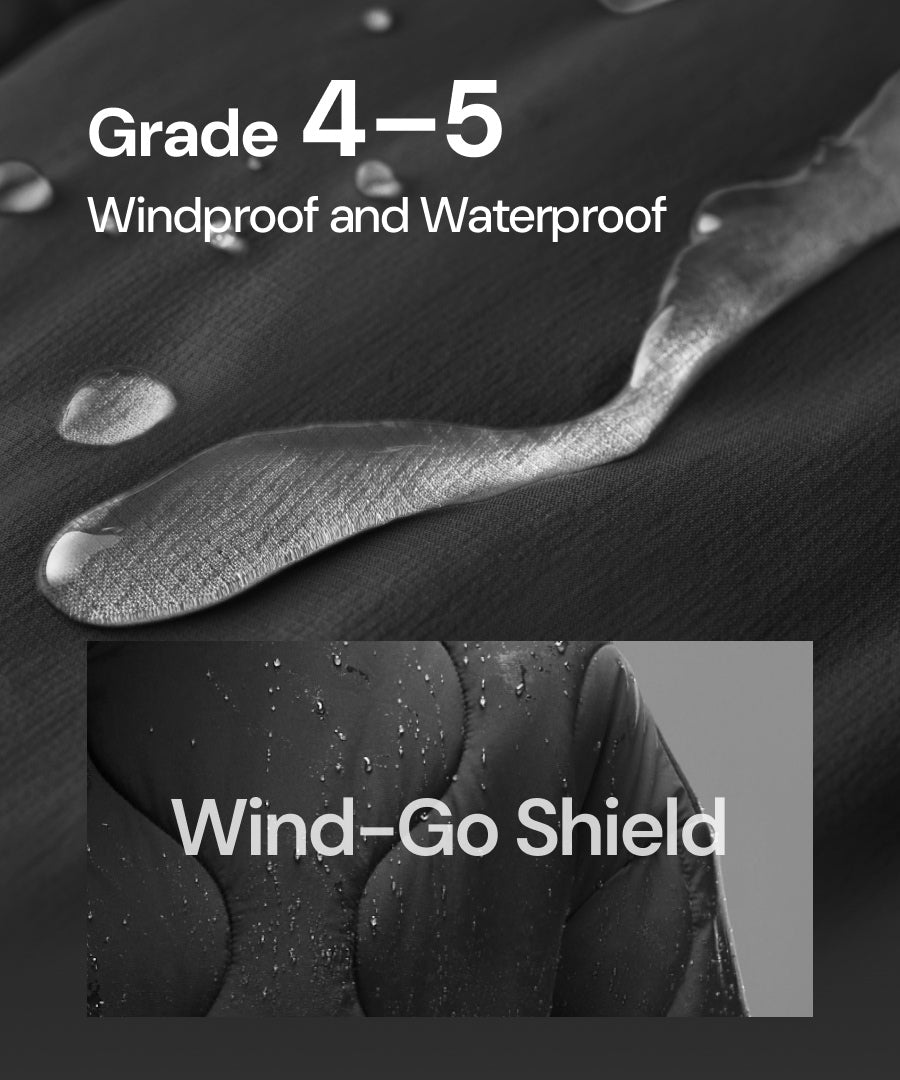Wind-Go fabric shields against wind (<10mm/s) and light rain, while resisting stains for easy care and reliable winter protection.