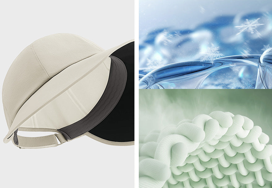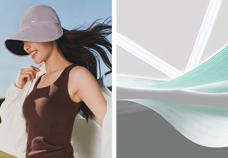 A 9.5 cm widened brim with a 270° curved design helps shield the face and jawline, offering dependable coverage during strong sunlight. It supports daily photoaging defense without the need for frequent sunscreen reapplication.