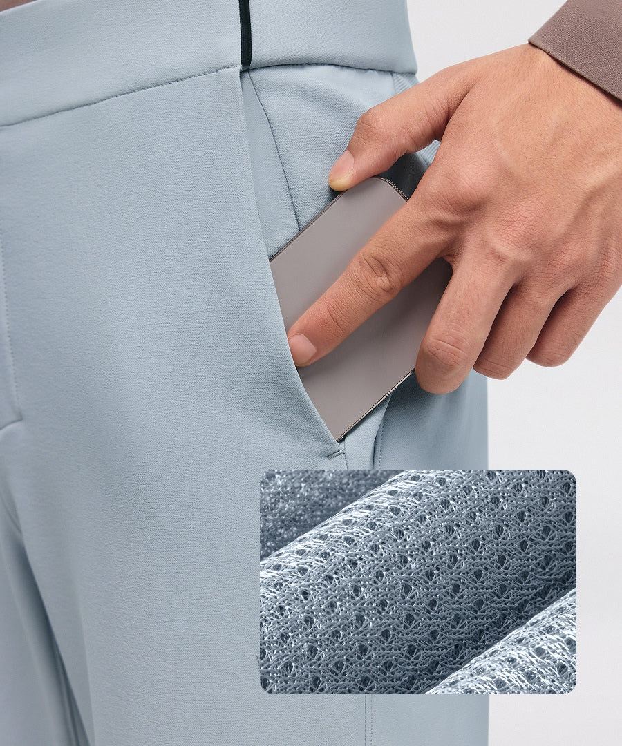 Breathable mesh-lined pockets secure essentials like your phone and wallet while releasing excess heat. Travel hands-free and move light without needing a backpack.