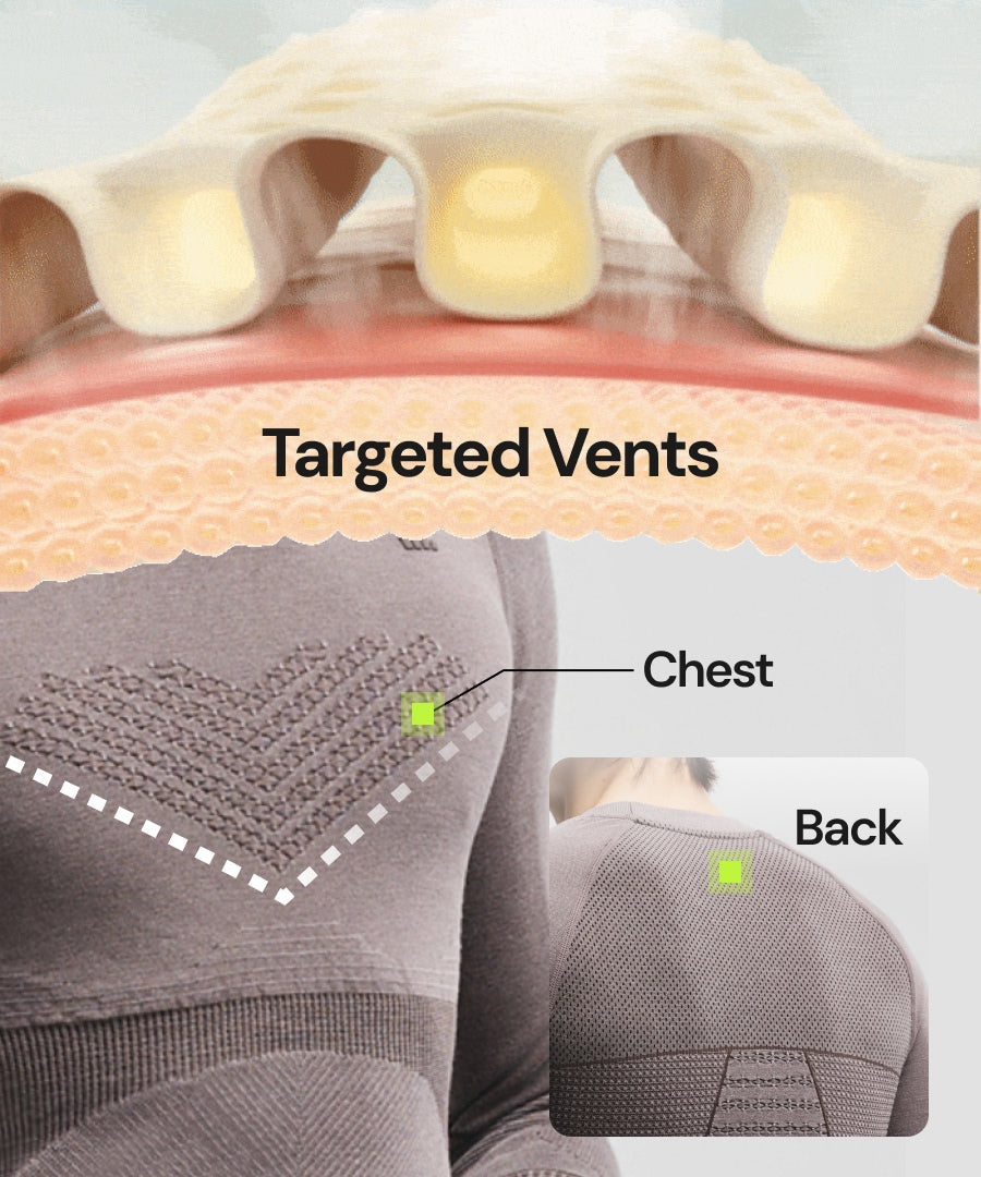 Strategically engineered 3D sweat channels accelerate evaporation in high-sweat zones like chest, back, and underarms. Even during intense exertion, your skin stays fresh and dry.