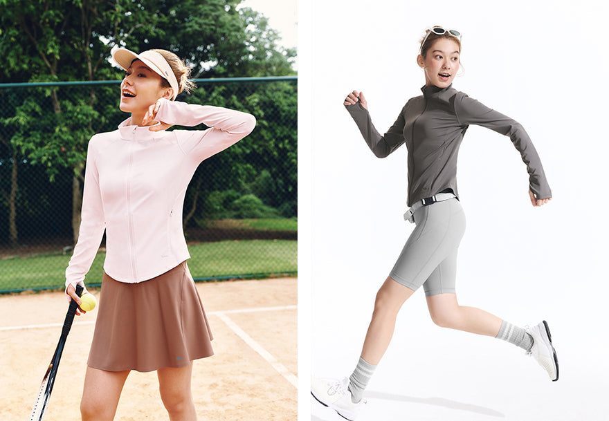 It pairs naturally with active skirts, performance shorts, or high rise pants for sports such as tennis or golf. It also works well for daily outdoor wear as a light outer layer.